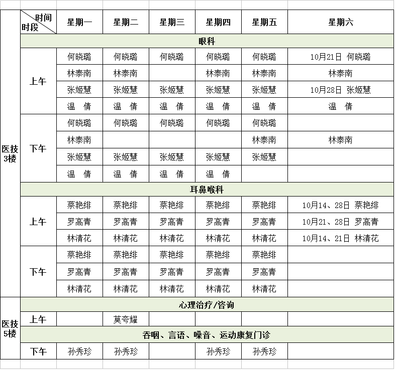 福建省級機關(guān)醫(yī)院2023年10月專家門診排班表來啦!有需要的小伙伴趕緊收藏。