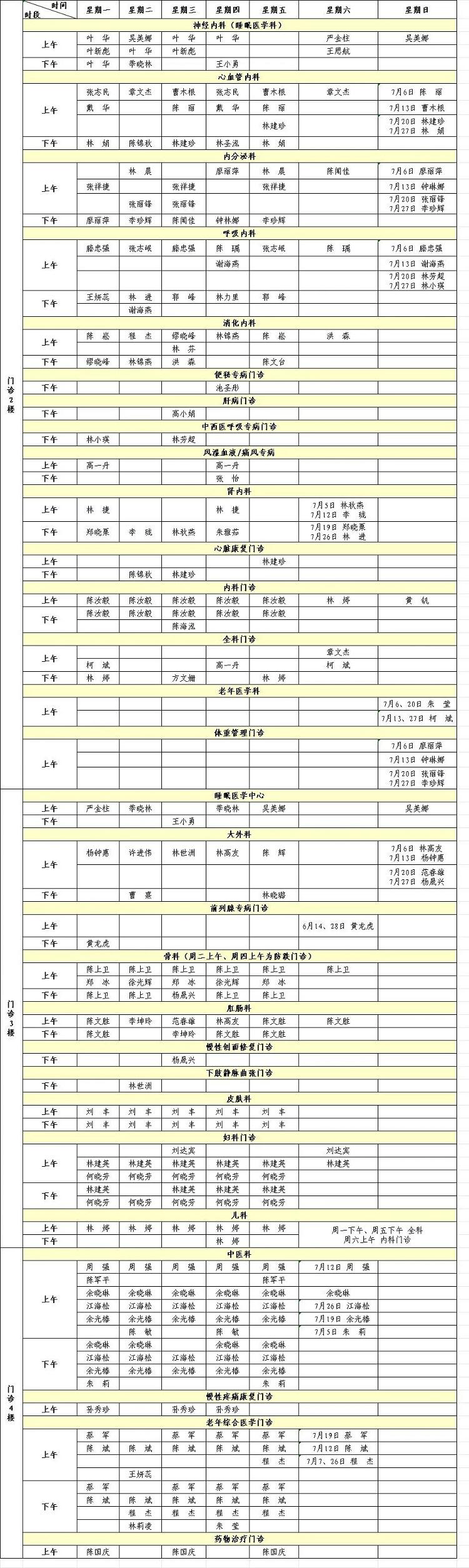 福建省級機(jī)關(guān)醫(yī)院2025年7月專家門診排班表來啦!有需要的小伙伴趕緊收藏。