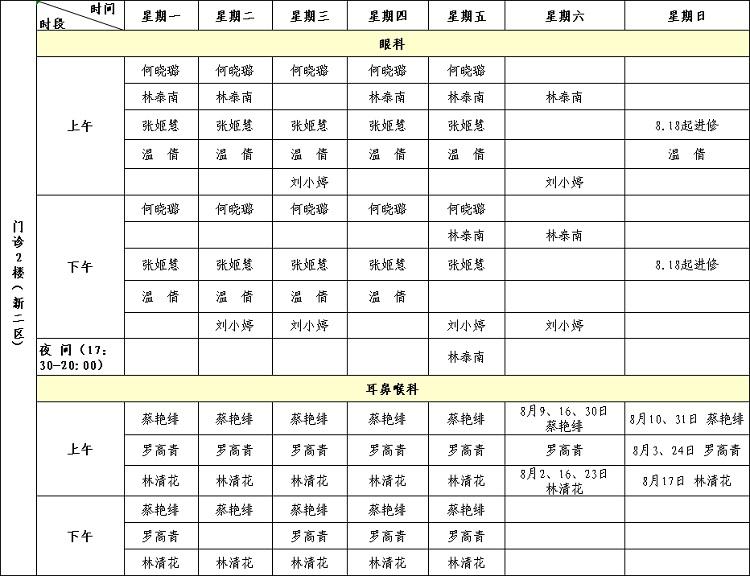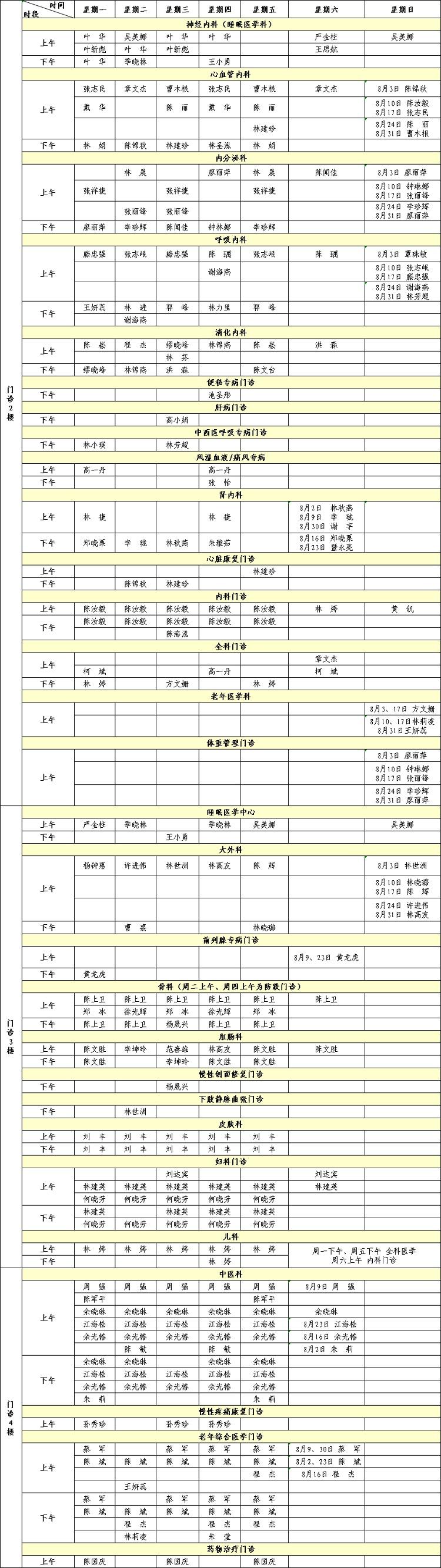 福建省級(jí)機(jī)關(guān)醫(yī)院2025年8月專(zhuān)家門(mén)診排班表來(lái)啦!有需要的小伙伴趕緊收藏。
